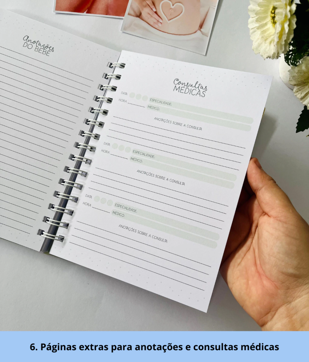 A caderneta de saúde é um item essencial para o enxoval do seu bebê. Nela, você poderá registrar todas as consultas pediátricas, vacinas e informações importantes para garantir o acompanhamento completo do seu pequeno.