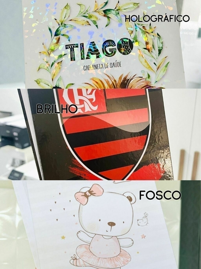 • Laminação na capa fosca, brilhosa ou holográfica para proteger contra água, riscos ou desbotamento
