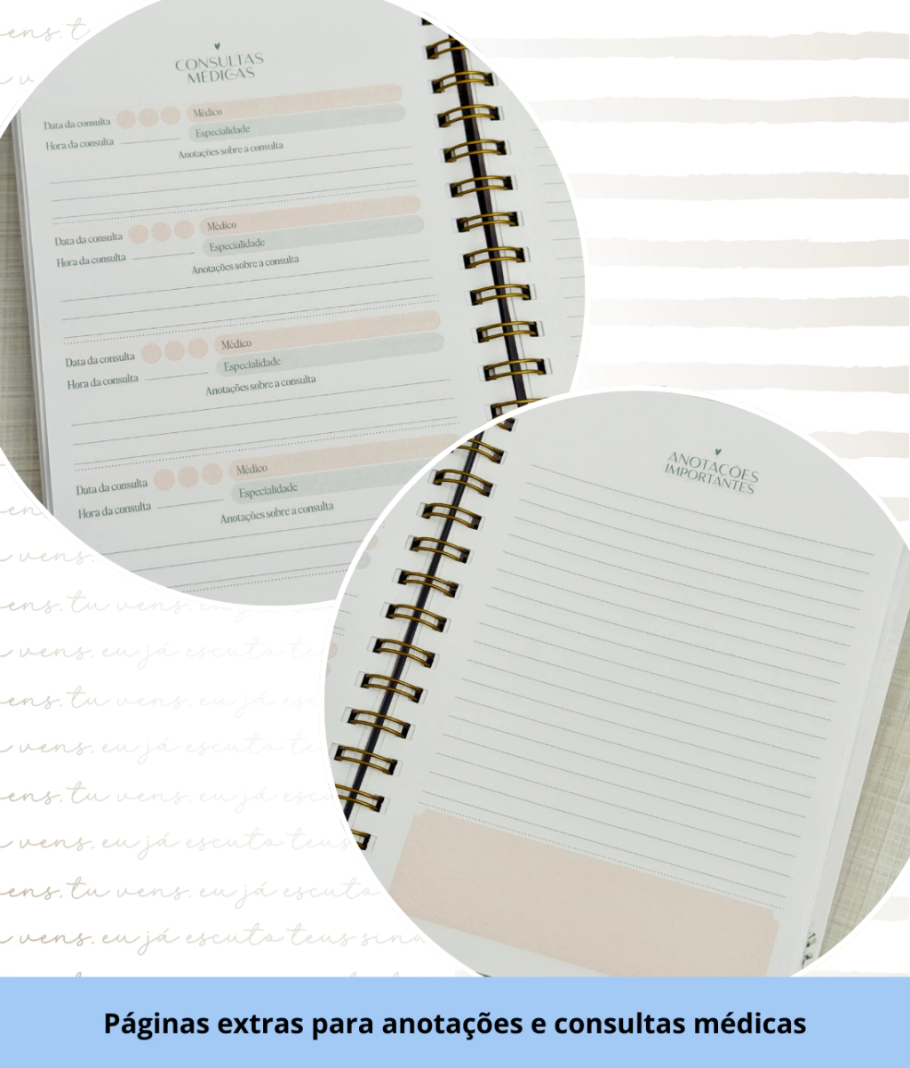 • Contém a versão atualizada da caderneta da criança + folhas extras para anotar os dados do nascimento, folhas extras para anotações gerais e marcação de consultas;