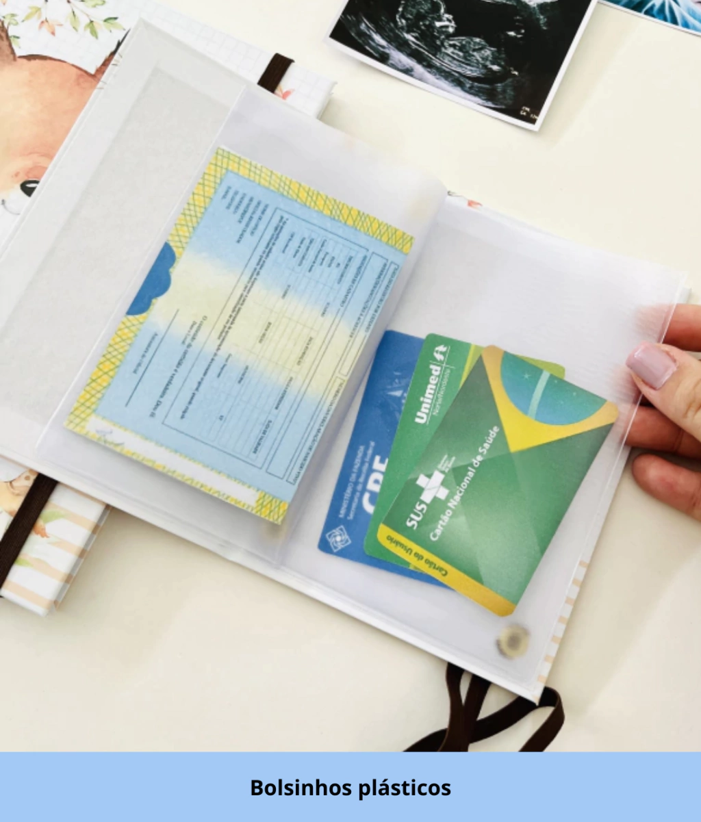 Prático e delicado, o porta documentos é ideal para organizar e proteger os principais documentos do seu bebê, como certidão de nascimento, cartão do SUS, carteirinha do plano de saúde e outros.