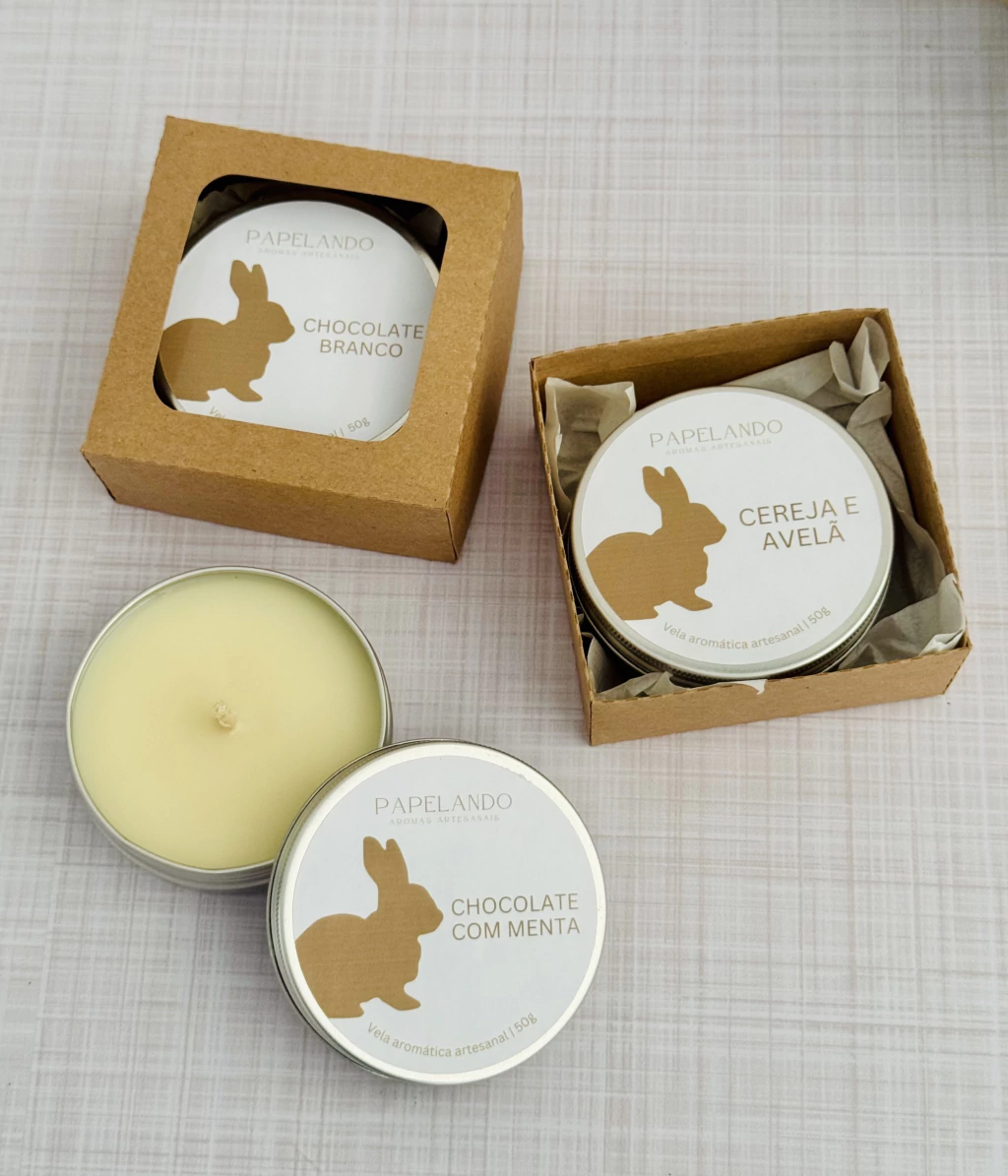 Transforme seu espaço em um refúgio de aromas irresistíveis. As nossa velsa em edição limitada de páscoa em três aromas irresistíveis: chocolate com menta, chocolate branco e cereja e avelã. Opção perfeita para presentear 🎁